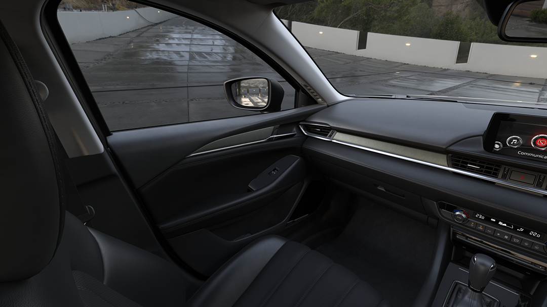 From the moment you get in, you will be quietly impressed with the understated luxury of the new Mazda6. The stylish dash envelops you with thoughtfully located controls and read-outs so you can focus on the drive. The interior environment is one of uncluttered elegance. Subtle details like ambient overhead console lighting and interior trim add a luxurious touch.