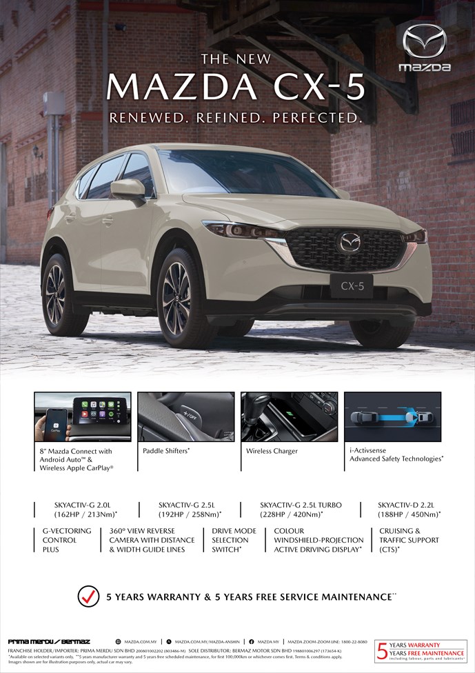 Boasting a new sleek front-end design grill and bumper, redesigned signature LED rear lamps, influenced by the ‘KODO’ principles, the new CX-5 rides with elegance and maturity.