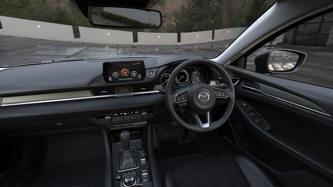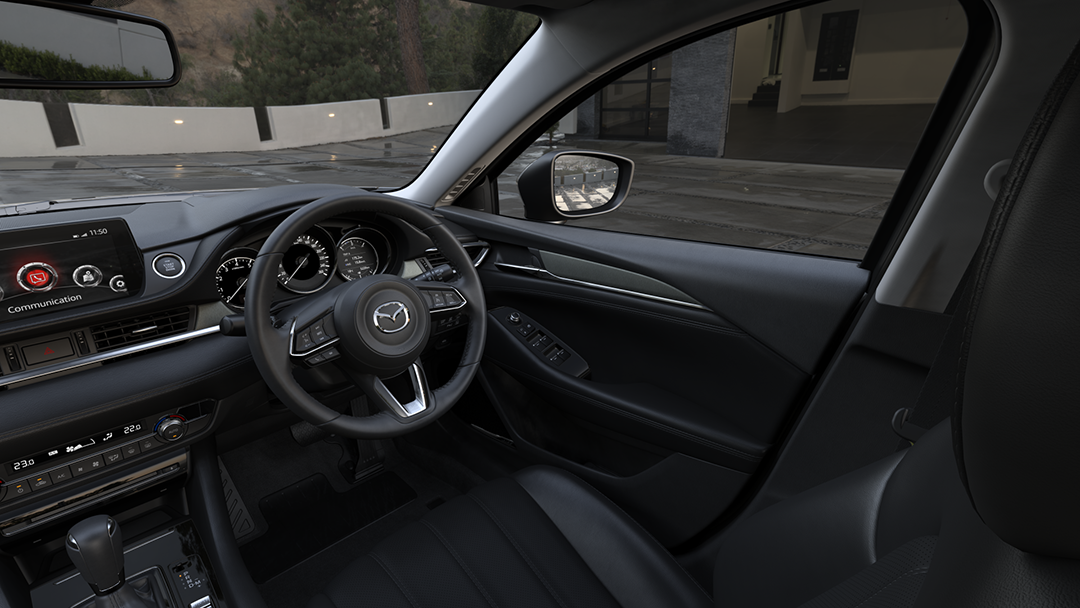 From the moment you get in, you will be quietly impressed with the understated luxury of the new Mazda6. The stylish dash envelops you with thoughtfully located controls and read-outs so you can focus on the drive. The interior environment is one of uncluttered elegance. Subtle details like ambient overhead console lighting and interior trim add a luxurious touch.